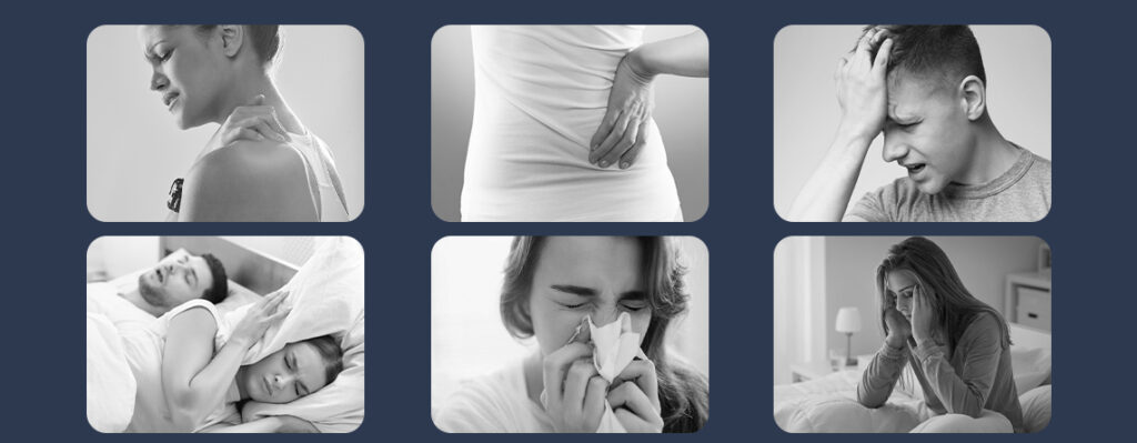 It starts when an unsupportive, worn out pillow forces your spine out of alignment throughout the night. When your body doesn’t match the pillow, your head sinks and shifts, causing muscle tension to build from your neck down to your lower back.